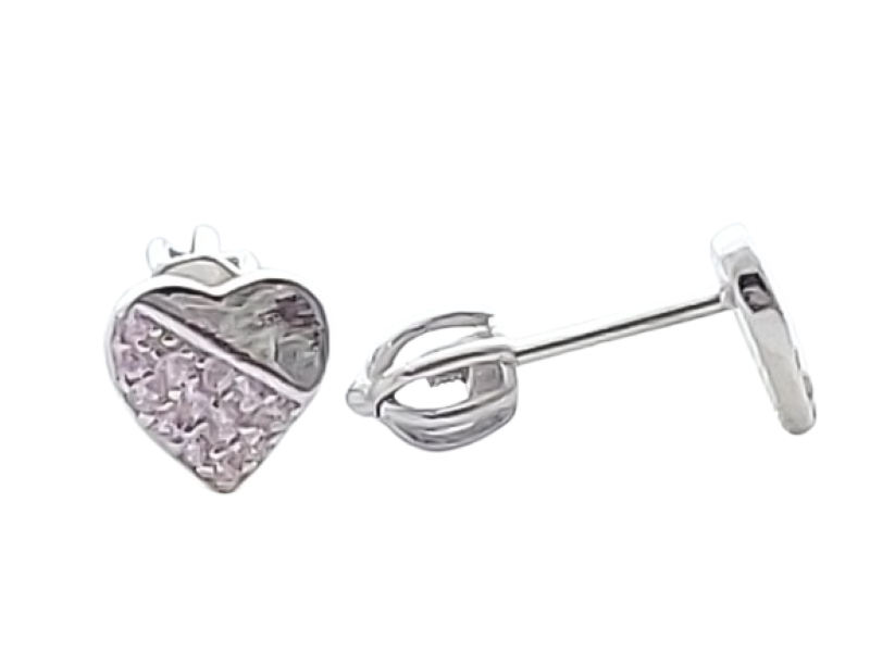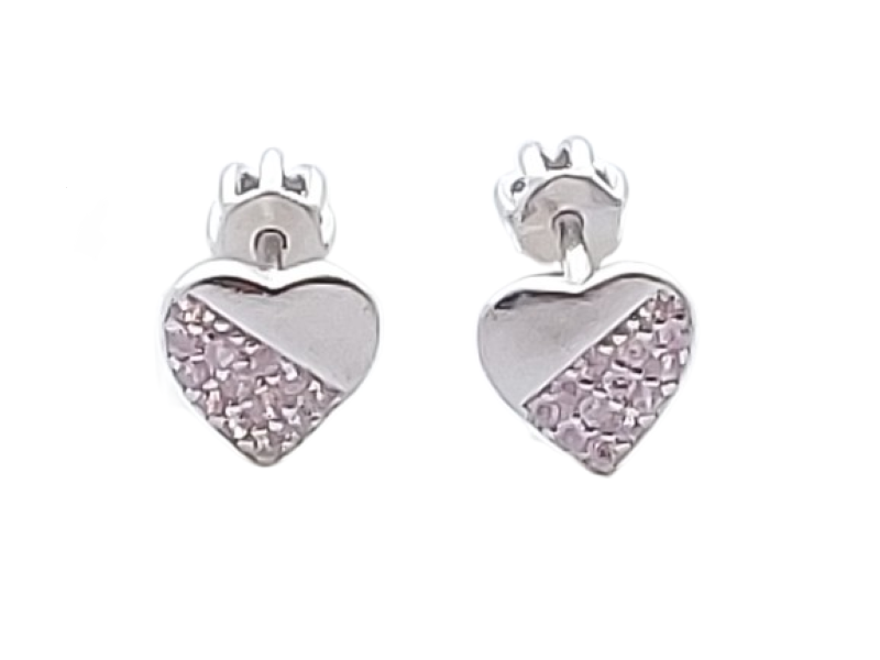Tyto stříbrné náušnice ve tvaru srdce okouzlí svou jemností a romantickým detailem v podobě růžového zirkonu, který dodává šperku něžný třpyt a ženský nádech. Kombinace hladkého stříbra a třpytivého kamene působí elegantně, ale zároveň velmi jemně.