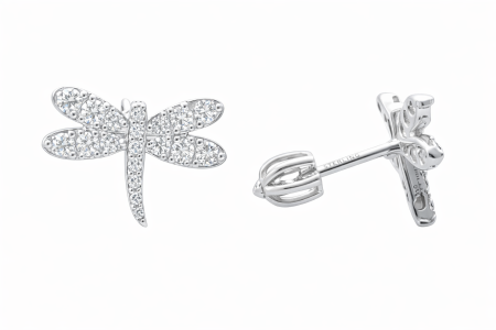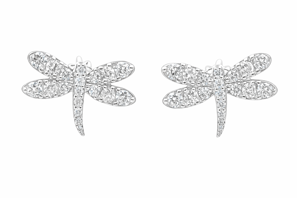 Tyto stříbrné náušnice s motivem vážky okouzlí svou lehkostí, jemností a detailním zpracováním. Křídla vážky jsou osazena čirými zirkony, které vytvářejí decentní třpyt a dodávají šperku elegantní, vzdušný vzhled.