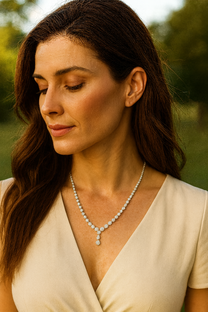 Skvěle se hodí pro svatební den, večerní událost i jako decentní doplněk k elegantní halence. Náhrdelník lze doplnit náušnicemi a náramkem - tyto kombinace najdete v sekci sety.