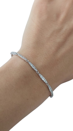Stříbrný náramek jemný se zirkony IV. je povrchově upraven rhodiováním. Rhodium patří mezi drahé kovy, patřící do skupiny platinových a chrání stříbro před černáním, zvyšuje lesk řetízku.