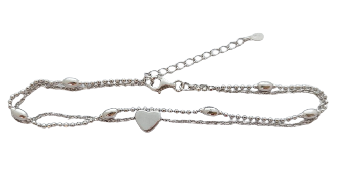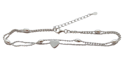 Stříbrný náramek na nohu dvojitý se srdíčkem má zapínání na karabinu. Šířka náramku na nohu: 3 mm Délka náramku na nohu: 25 cm Hmotnost náramku na nohu: 4.8 g