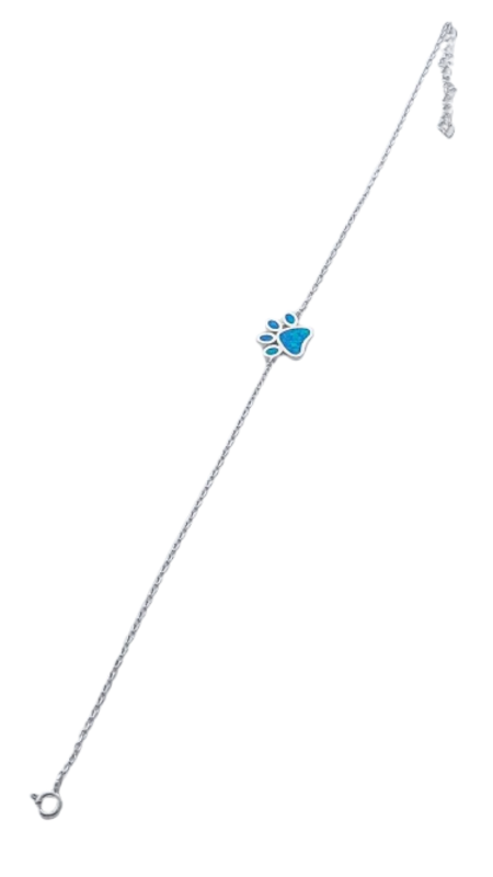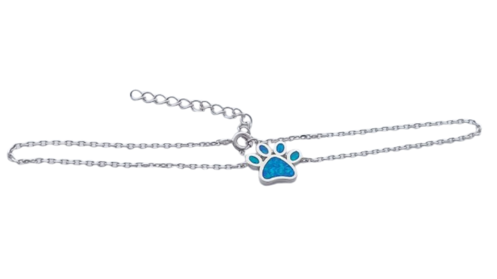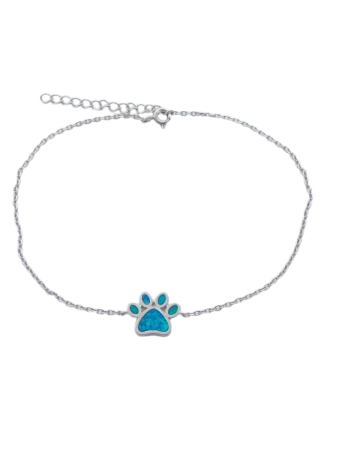Stříbrný náramek na nohu opálová tlapka má očkové zapínání a je povrchově upraven rhodiováním. Rhodium patří mezi drahé kovy, patřící do skupiny platinových a chrání stříbro před černáním, zvyšuje lesk řetízku. Šířka náramku na nohu: 1 mm Délka náramku na nohu: 23,0 cm s prodlužovacím řetízkem 26 cm. Rozměr tlapky: 1.6 cm x 1.1 cm Hmotnost náramku na nohu: 2.5 g