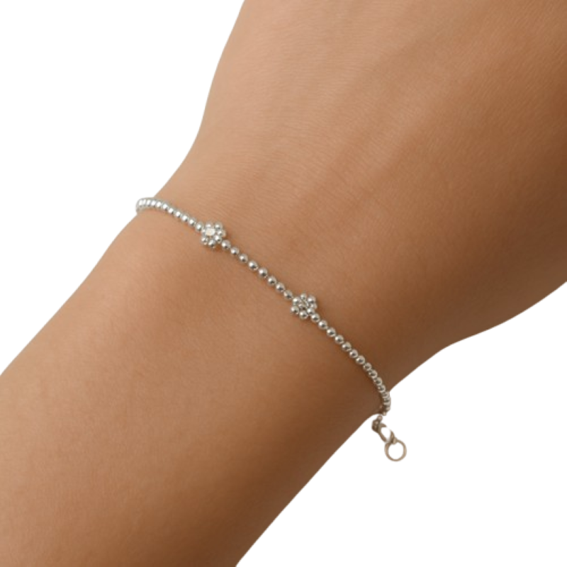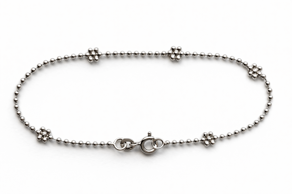 Tento stříbrný náramek je ztělesněním jemné elegance. Tenký řetízek z kvalitního stříbra je pravidelně doplněn drobnými kuličkami, které náramku dodávají decentní lesk a vizuální rytmus.