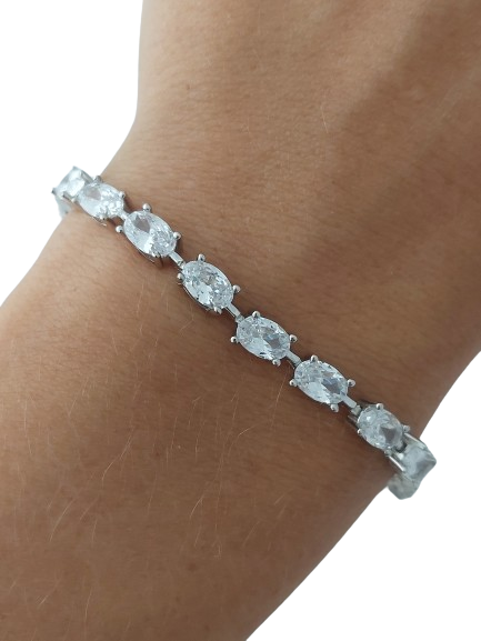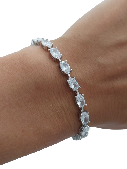 Tento půvabný náramek z pravého stříbra 925/1000 okouzlí svou nadčasovou elegancí a vysokým leskem. Šperk tvoří souvislá řada precizně zasazených zirkonů oválného brusu, které dokonale odrážejí světlo a vytvářejí efekt skutečného luxusu.