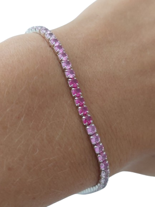 Stříbrný náramek jemný se zirkony je povrchově upraven rhodiováním. Rhodium patří mezi drahé kovy, patřící do skupiny platinových a chrání stříbro před černáním, zvyšuje lesk řetízku.