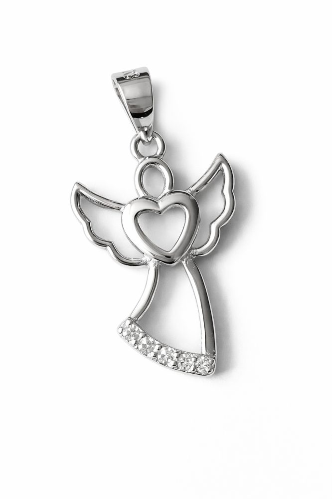 Tento stříbrný přívěsek anděl se srdcem je jemným symbolem ochrany, lásky a vnitřního klidu. Andělská silueta s rozevřenými křídly a srdíčkem uprostřed představuje blízkost, bezpečí a pozitivní energii.