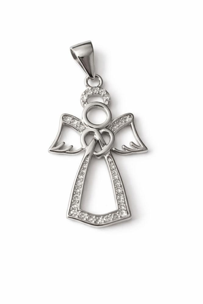 Motiv anděla je tradičně spojován s ochranou, klidem a nadějí. Otevřený, lehký design působí jemně a vyváženě, zatímco zirkony zvýrazňují kontury šperku a podtrhují jeho výjimečnost. Tento přívěsek je ideální jako osobní talisman i jako smysluplný dárek s hlubším poselstvím.