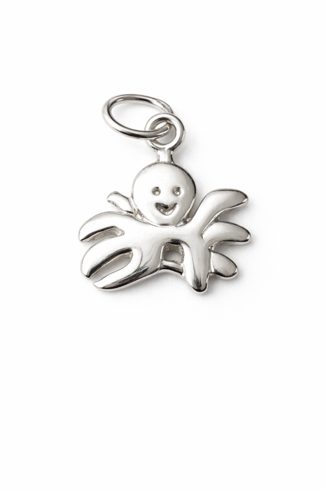 Tento stříbrný přívěsek ve tvaru chobotnice spojuje lehkost, originalitu a jemný minimalistický styl. Usměvavý motiv chobotnice působí přátelsky a hravě, přesto zůstává decentním doplňkem vhodným pro každodenní nošení.