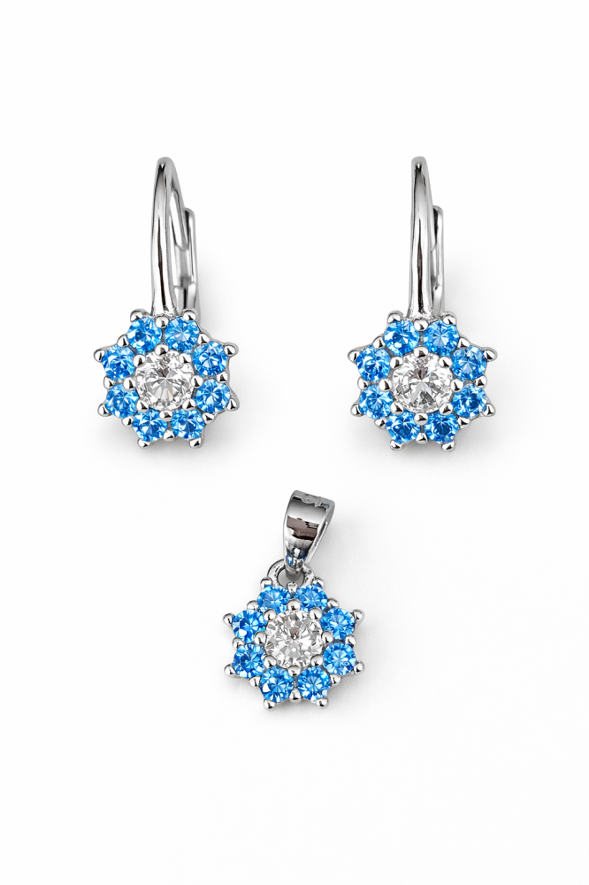 Jemný stříbrný přívěsek s modrými zirkony okouzlí svým květinovým designem a svěžím třpytem. Středový čirý zirkon je obklopen modrými zirkony, které vytvářejí harmonický květ připomínající letní oblohu a čistotu vody. Celek působí lehce, elegantně a velmi žensky.