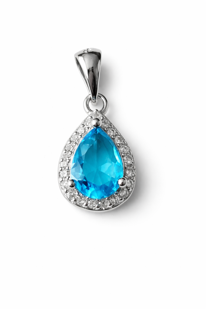 Tento něžný a elegantní stříbrný přívěsek je vyroben ze stříbra ryzosti 925/1000 a okamžitě zaujme svým luxusním, a přitom jemným designem. Dominantou přívěsku je světle modrý zirkon broušený do kapkového tvaru, který se krásně leskne při dopadu světla a působí velmi svěže a ženským dojmem.