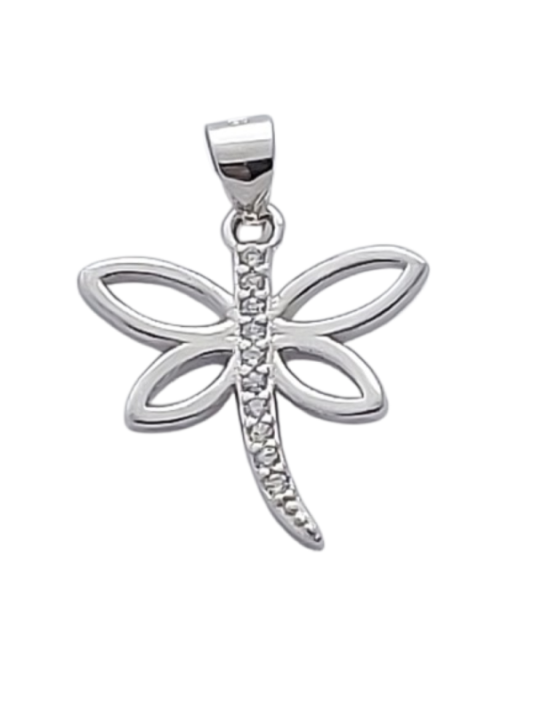 Tento stříbrný přívěsek ve tvaru vážky se zirkony okouzlí jemným zpracováním a elegantním designem. Otevřená křídla působí lehce a vzdušně, zatímco linie čirých zirkonů v těle vážky dodává šperku decentní třpyt.
