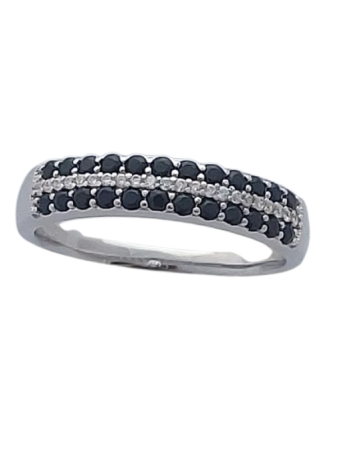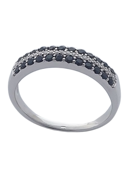 Tento stříbrný prsten s černými a čirými zirkony představuje dokonalé spojení moderní elegance a výrazného designu. Víceřadé osazení kamenů v jemně klenutém provedení vytváří efekt hloubky a luxusního třpytu, který okamžitě upoutá pozornost.