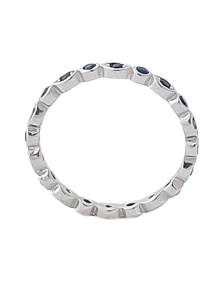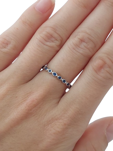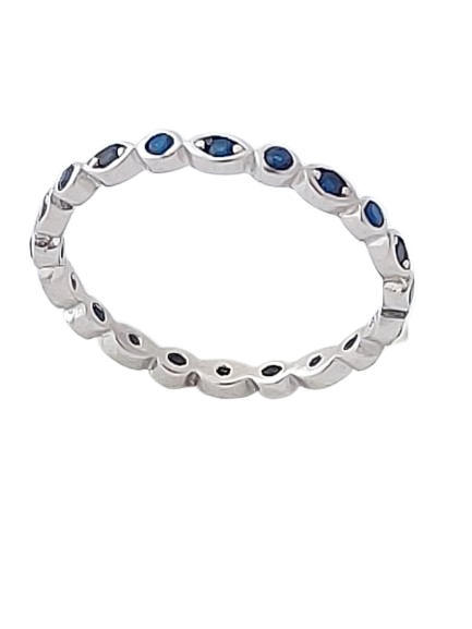 Tento stříbrný eternity prsten s modrými zirkony je symbolem elegance, harmonie a nekonečné krásy. Zirkony zasazené po celém obvodu vytvářejí nepřetržitý kruh třpytu, který symbolizuje věčnost, rovnováhu a hluboké emoce.
