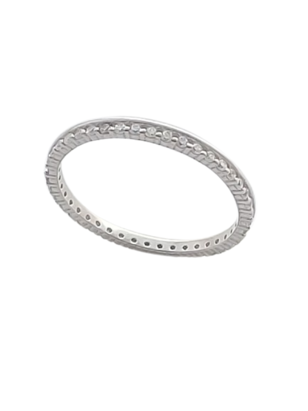 Tento stříbrný kroužek se zirkony představuje nadčasový šperk inspirovaný oblíbeným eternity stylem, kdy jsou drobné kameny zasazeny po celém obvodu prstenu. Díky tomu vytváří nepřetržitý třpyt a elegantní efekt při každém pohybu ruky.