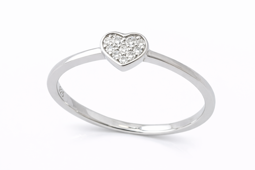Tento stříbrný prsten se zirkony ve tvaru srdce představuje nadčasový symbol lásky, něhy a elegance. Jemné srdíčko osazené drobnými čirými zirkony vytváří decentní třpyt, který působí velmi ženským a romantickým dojmem.