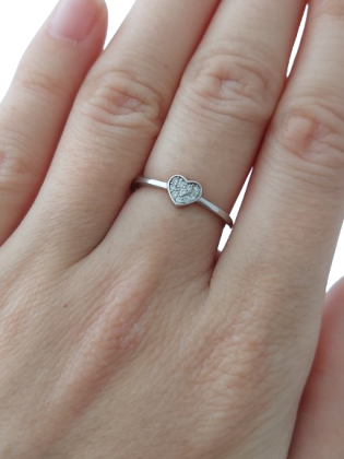 Hmotnost prstenu u velikosti 49 je 1.0 g. Jemný kroužek se zirkonovým srdíčkem.
