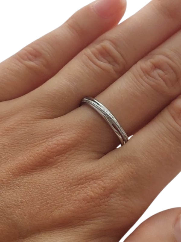 Tento celostříbrný prsten ze stříbra ryzosti 925/1000 osloví ženy, které preferují čistý minimalistický styl bez kamenů. Jemně strukturovaný reliéfní povrch dodává prstenu elegantní detail, aniž by narušoval jeho nadčasovou jednoduchost.