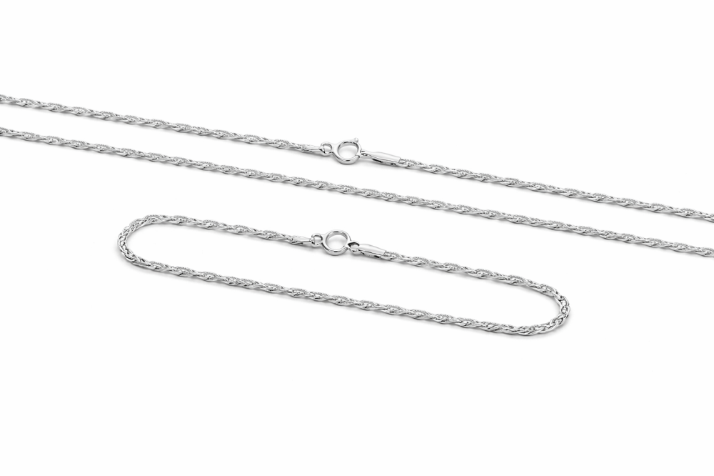 Stříbrný řetízek má délku 42 cm a náramek má délku 18 cm. Šířka: 1 mm Hmotnost řetízku: 42cm/2.0g Hmotnost náramku: 18 cm/1,0g