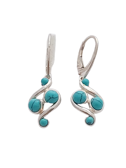 Tyrkysové náušnice atypické visací VII. jsou vyrobeny ze stříbra o ryzosti 925/1000.