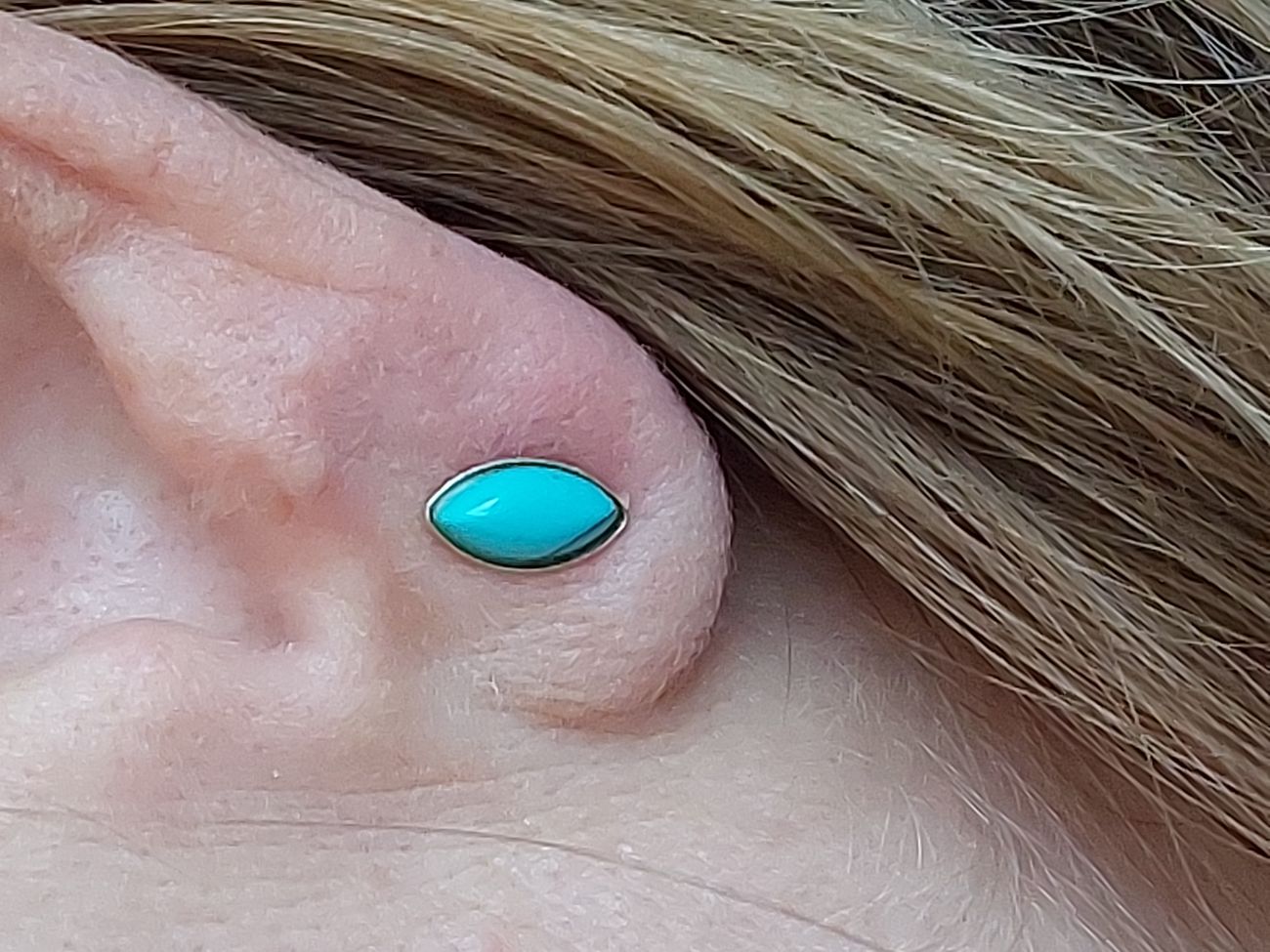Tyrkysové náušnice očka. Rozměr náušnice: 0.9 cm x 0.5 cm Hmotnost náušnic: 1.0 g